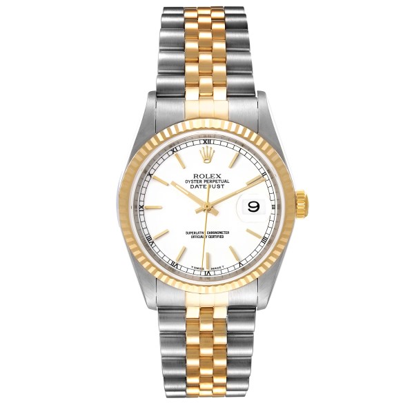 | Model Name: | Rolex Datejust Steel Yellow Gold White Dial Mens Watch 16233 |