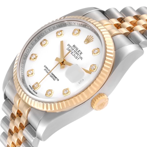 | Model Name: | Rolex Datejust Steel Yellow Gold White Diamond Dial Mens Watch 116233 |