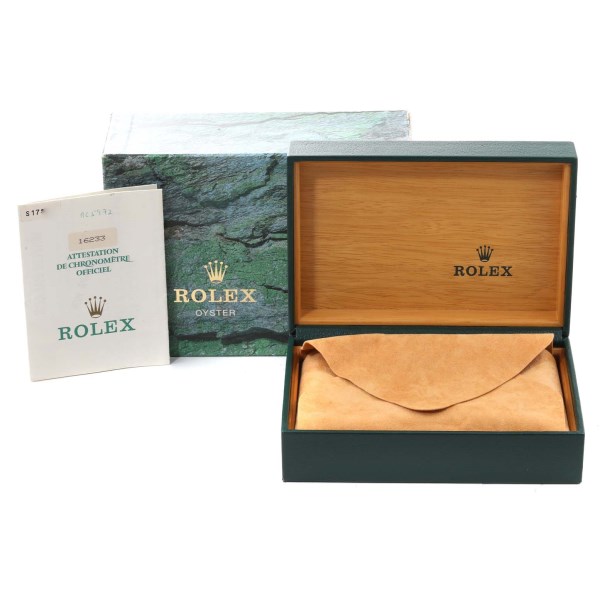 | Dial: | White dial with painted black Roman numerals and original Rolex factory diamond hour markers. Date window at 3 o'clock aperture. |