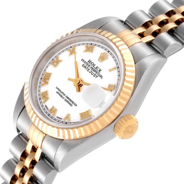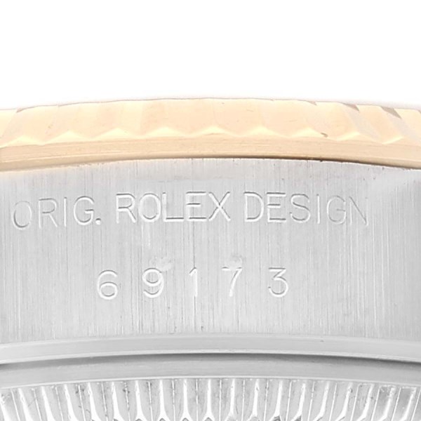 | Model Name: | Rolex Datejust Steel Yellow Gold White Roman Dial Ladies Watch 69173 Box Papers |
