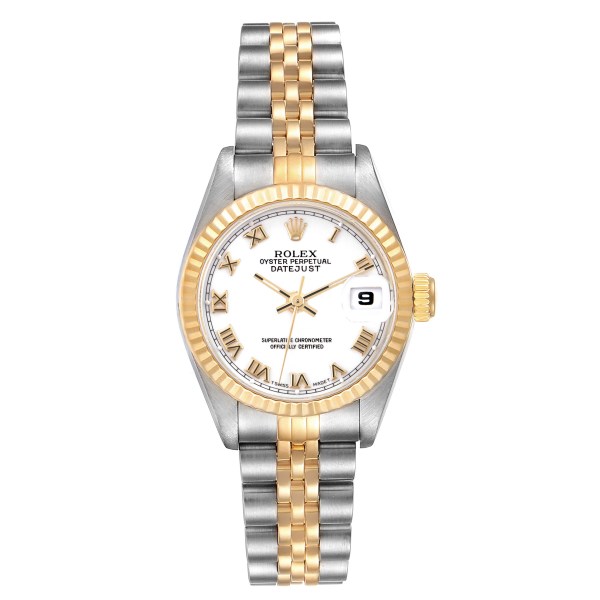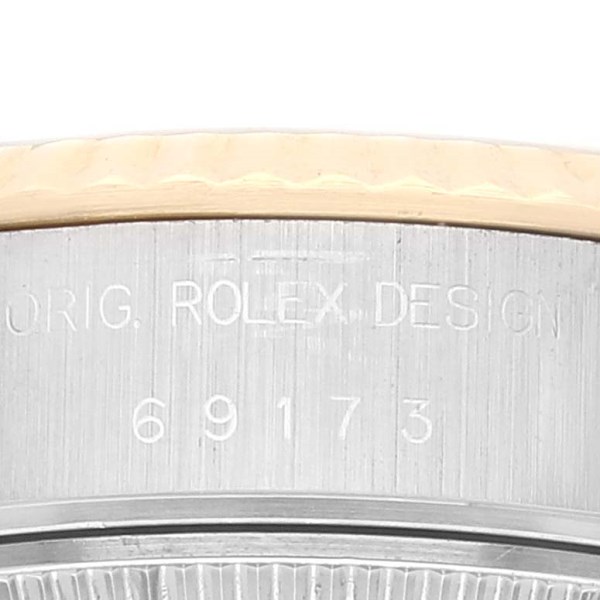 | Model Name: | Rolex Datejust Steel Yellow Gold White Roman Dial Ladies Watch 69173 Box Papers |