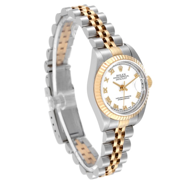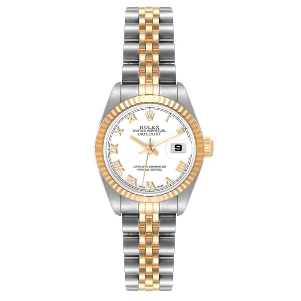 | Model Name: | Rolex Datejust Steel Yellow Gold White Roman Dial Ladies Watch 79173 |
