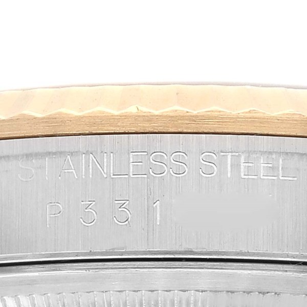 | Case: | Stainless steel case 36 mm in diameter. Rolex logo on an 18K yellow gold crown. |