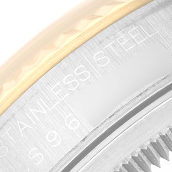| Case: | Stainless steel case 36 mm in diameter. Rolex logo on an 18K yellow gold crown. |