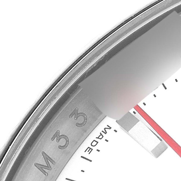 | Dial: | White dial with applied baton hour markers. Date window at 3 o'clock aperture. Red seconds hand and date wheel. |