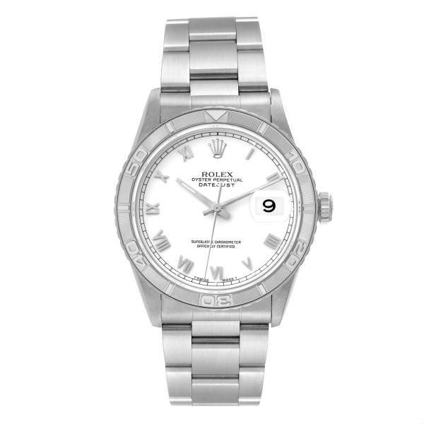 | Model Name: | Rolex Datejust Turnograph Steel White Gold White Roman Dial Mens Watch 16264 |