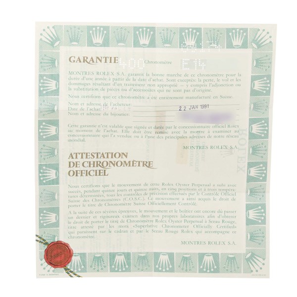 | Movement: | Officially certified chronometer automatic self-winding movement. |