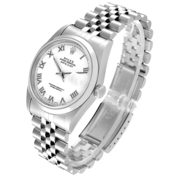 | Model Name: | Rolex Datejust White Roman Dial Jubilee Bracelet Steel Mens Watch 16200 |