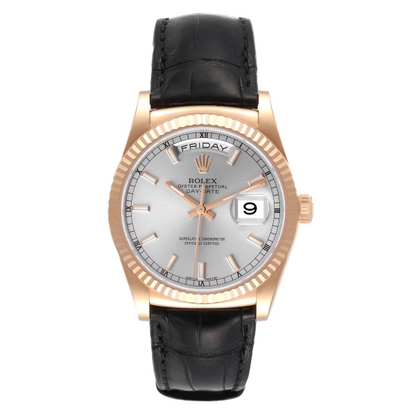 | Model Name: | Rolex Day Date Rose Gold Silver Dial Mens Watch 118135 Box Card |