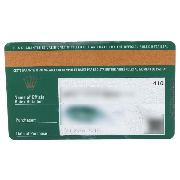 | Box & Papers: | Rolex box and card. |