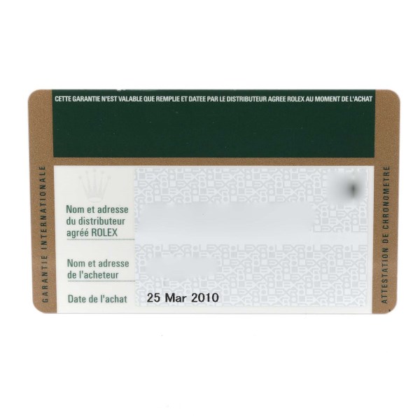| Box & Papers: | Rolex box and card. |