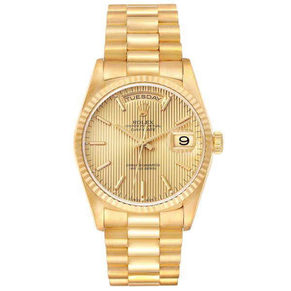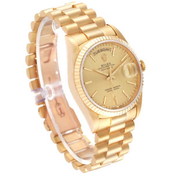 | Bracelet: | 18k yellow gold President bracelet. Fits 7 1/4" wrist. |
