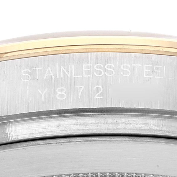 | Bracelet: | Stainless steel and 18K yellow gold oyster bracelet with flip-lock clasp. Will fit up to 7.5" wrist. |