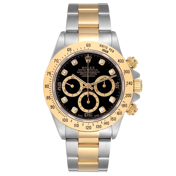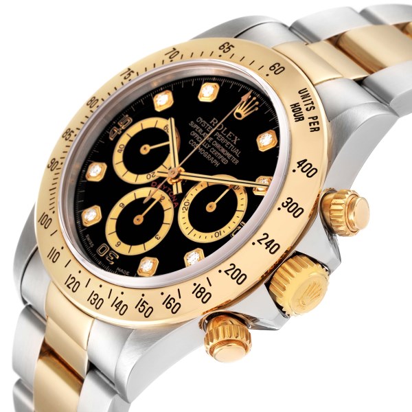 | Model Name: | Rolex Daytona Steel Yellow Gold Inverted 6 Diamond Dial Mens Watch 16523 Box Papers |