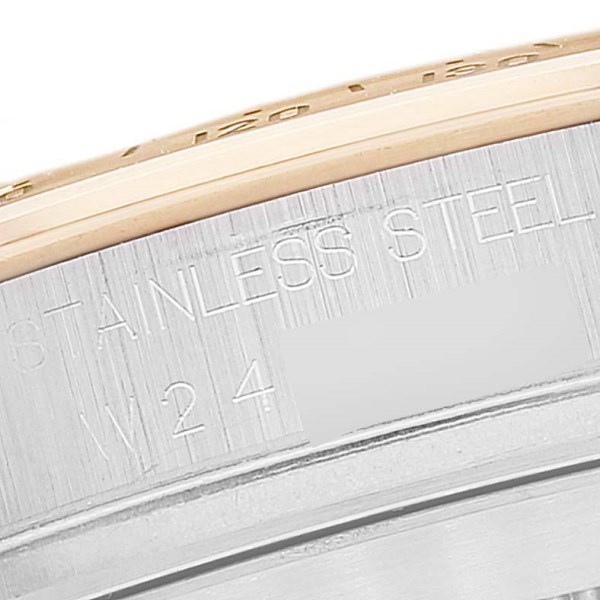 | Bracelet: | Stainless steel and 18K yellow gold oyster bracelet with flip-lock clasp. Will fit up to 7.5" wrist. |
