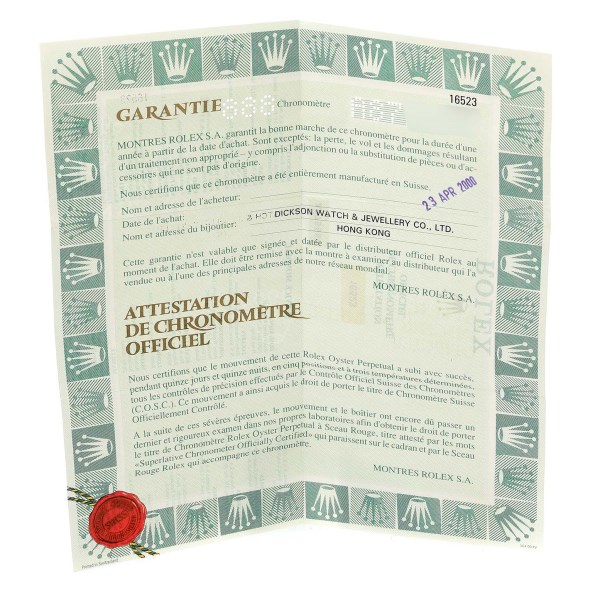 | Box & Papers: | Rolex box and papers. |
