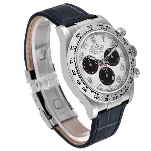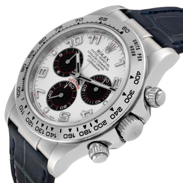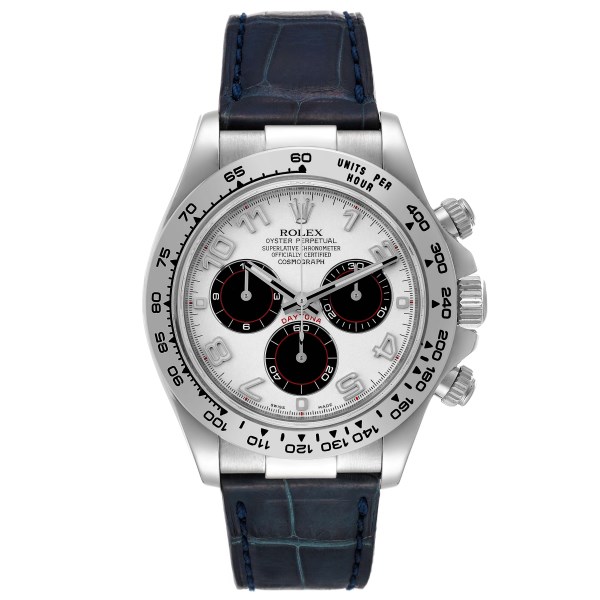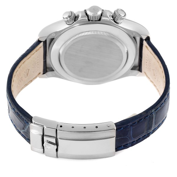 | Model Name: | Rolex Daytona White Gold Blue Strap Chronograph Mens Watch 116519 |