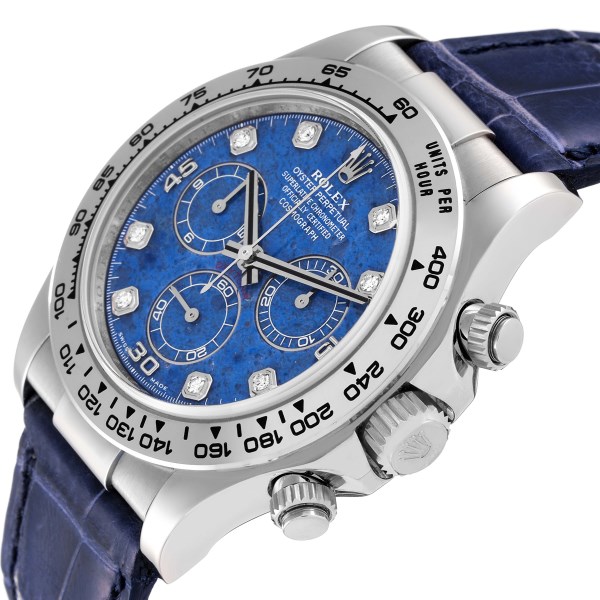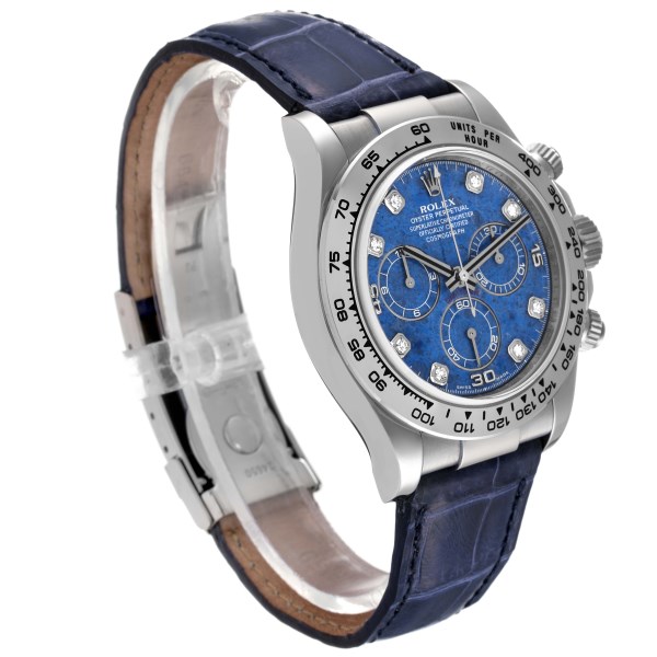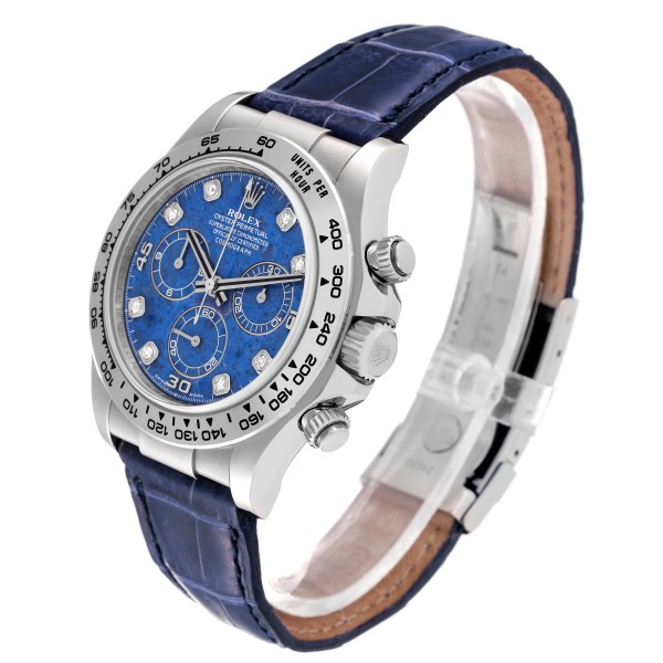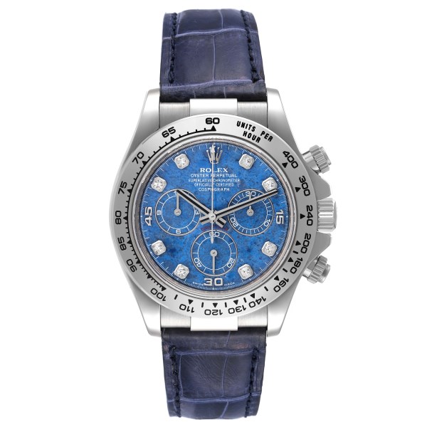 | Model Name: | Rolex Daytona White Gold Sodalite Stone Diamond Mens Watch 116519 Box Card |