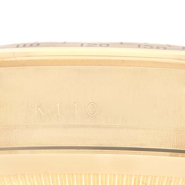 | Bezel: | 18K yellow gold tachymeter engraved bezel. |