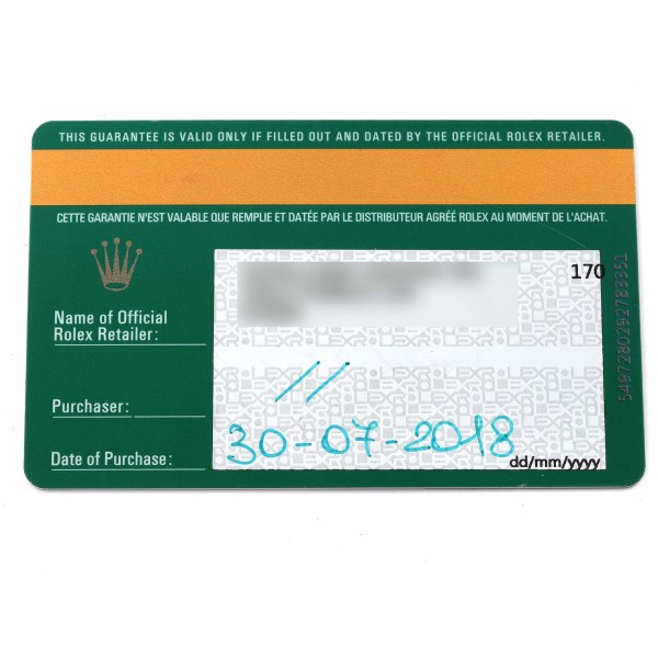 | Box & Papers: | Rolex box and card. |