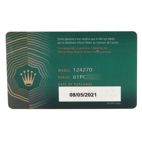 | Box & Papers: | Rolex box and card |