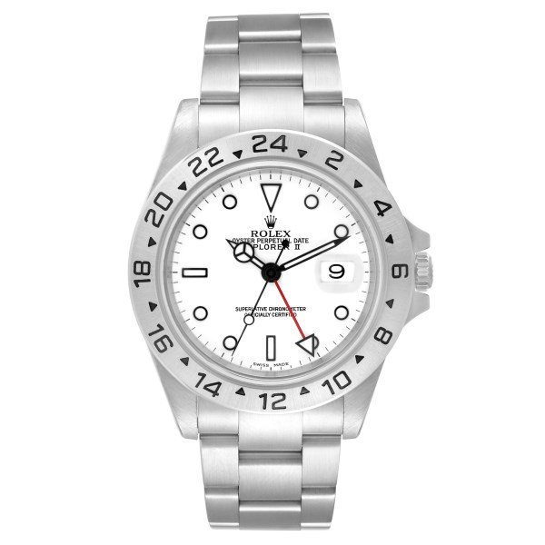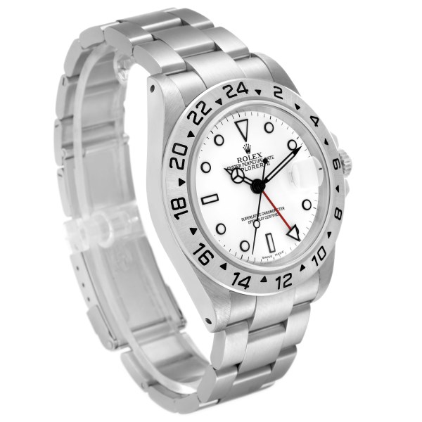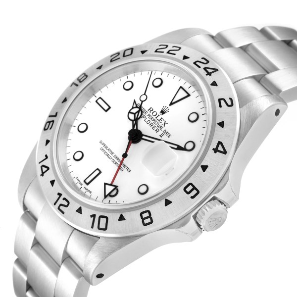 | Model Name: | Rolex Explorer II GMT 40mm Polar White Dial Red Hand Steel Mens Watch 16570 |