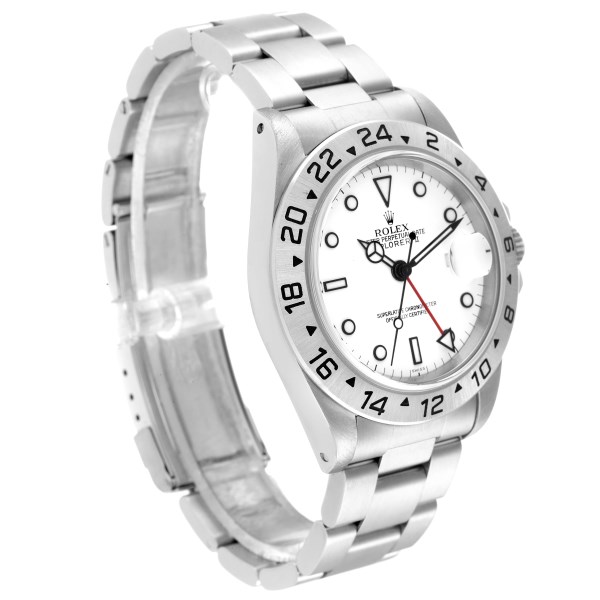 | Model Name: | Rolex Explorer II GMT 40mm White Polar Dial Red Hand Steel Mens Watch 16570 |