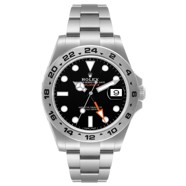 | Model Name: | Rolex Explorer II GMT 42 Black Dial Orange Hand Steel Mens Watch 216570 Box Card |