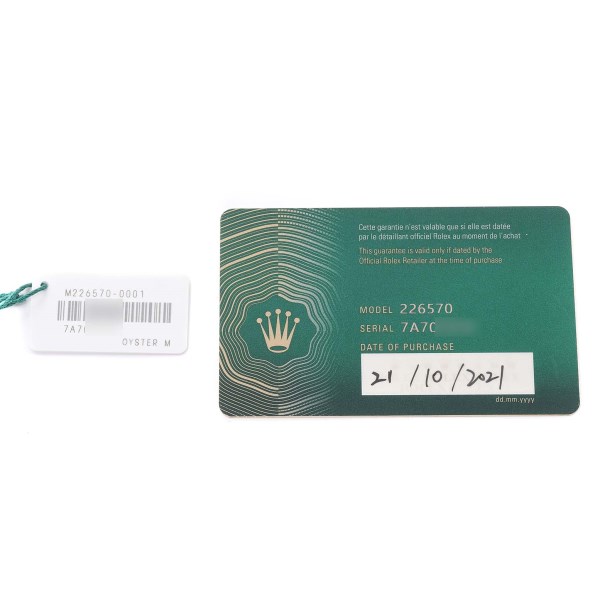 | Box & Papers: | Rolex box and card. |