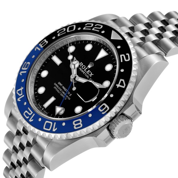 | Bezel: | Stainless steel bidirectional rotating GMT bezel with black and blue Batman Cerachrom ceramic insert. |