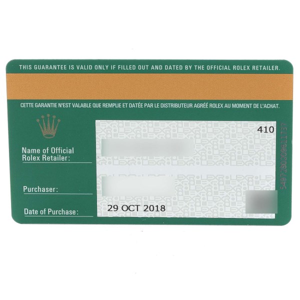 | Box & Papers: | Rolex box and card. |