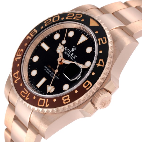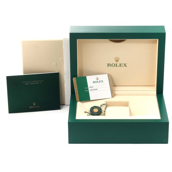 | Model Name: | Rolex GMT Master II Black Brown Root Beer Rose Gold Mens Watch 126715 Box Card |