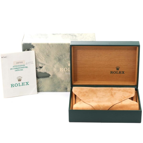 | Model Name: | Rolex GMT Master II Black Red Coke Bezel Steel Mens Watch 16710 Box Papers |