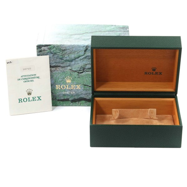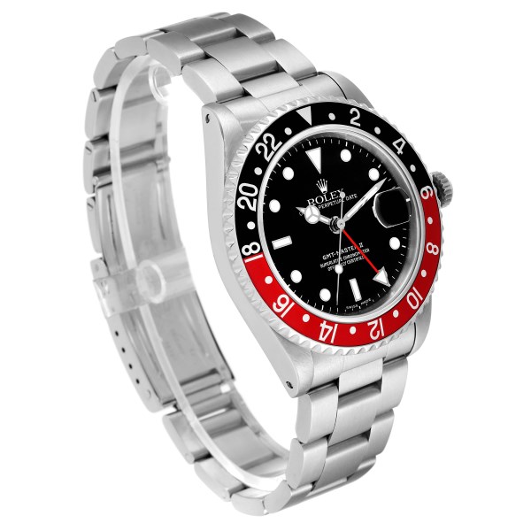 | Model Name: | Rolex GMT Master II Black Red Coke Bezel Steel Mens Watch 16710 Box Papers |