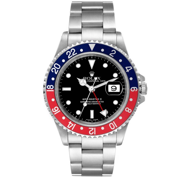 | Bezel: | Bidirectional rotating GMT bezel with a special 24-hour blue and red "Pepsi" bezel insert. |