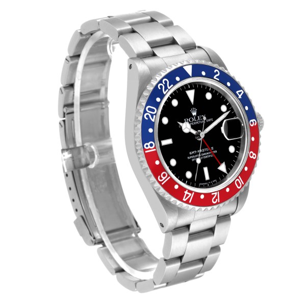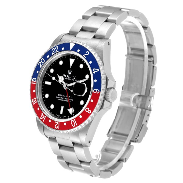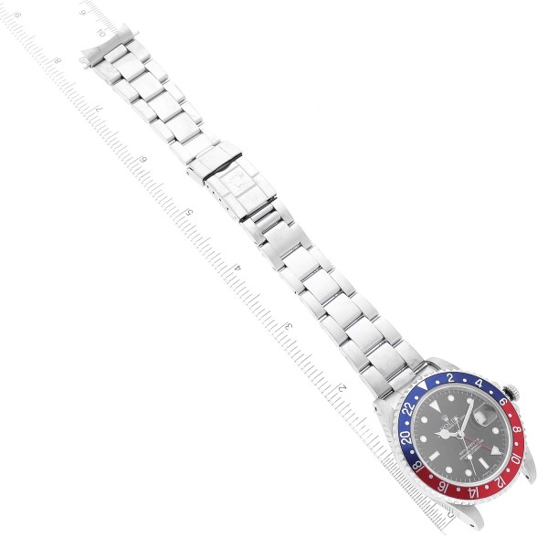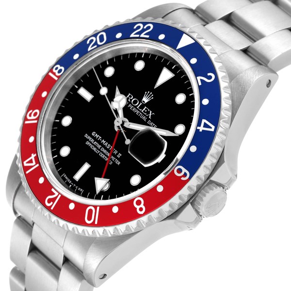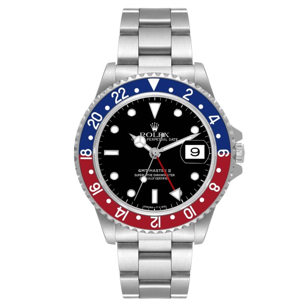 | Bezel: | Bidirectional rotating GMT bezel with a special 24-hour blue and red "Pepsi" bezel insert. |