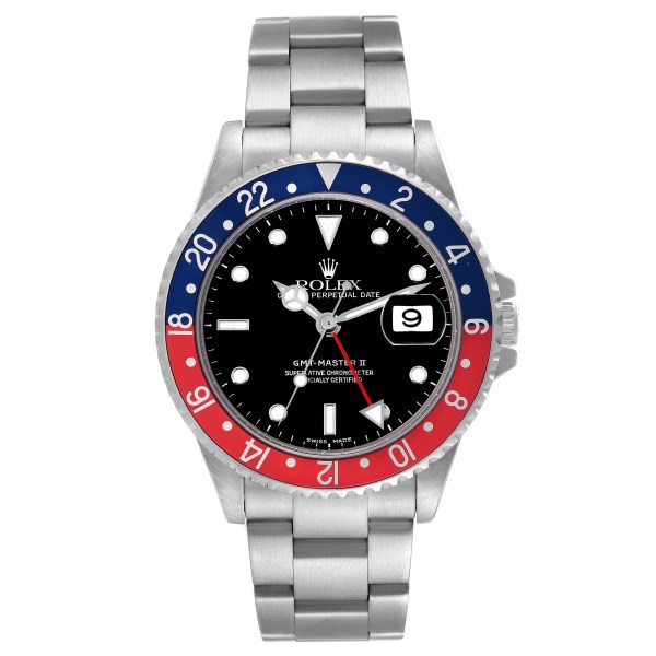 | Bezel: | Bidirectional rotating GMT bezel with a special 24-hour blue and red "Pepsi" bezel insert. |