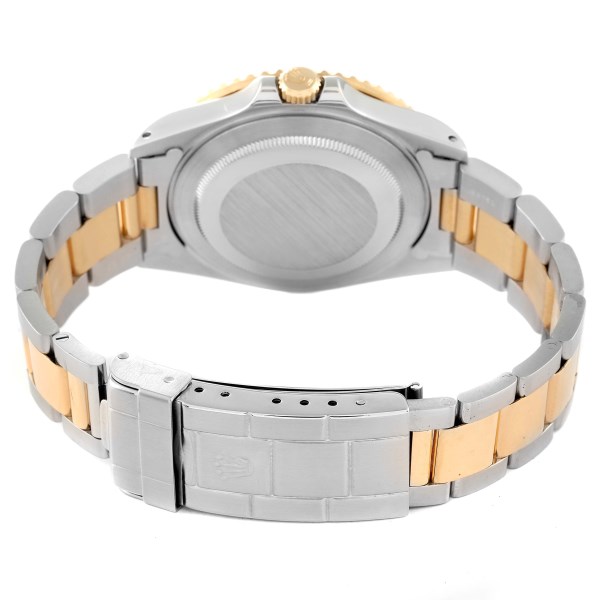 | Bezel: | 18k yellow gold bidirectional rotating bezel with 24-hour black bezel insert. |