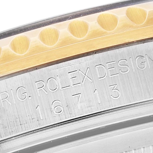 | Case: | Stainless steel and 18k yellow gold case 40 mm in diameter. Rolex logo on the crown. |