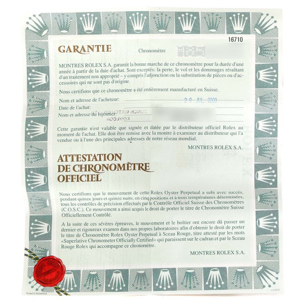 | Movement: | Officially certified chronometer self-winding movement. |