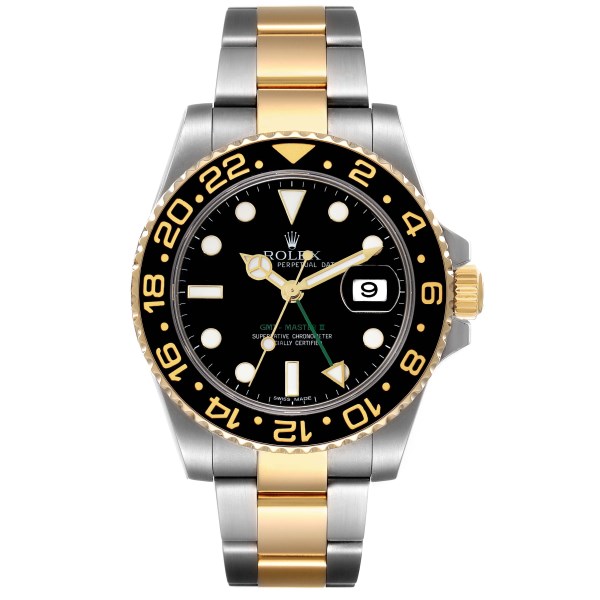 | Model Name: | Rolex GMT Master II Yellow Gold Steel Black Dial Mens Watch 116713 Box Card |