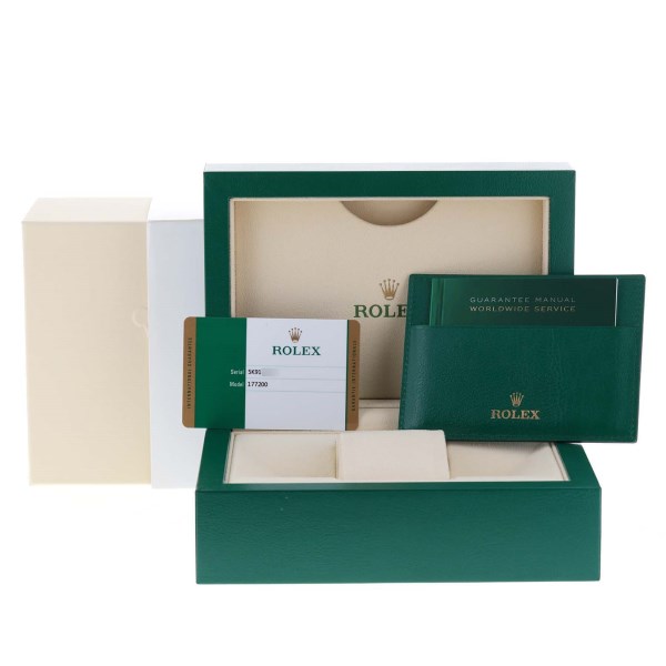 | Model Name: | Rolex Midsize Black Dial Domed Bezel Steel Ladies Watch 177200 Unworn |