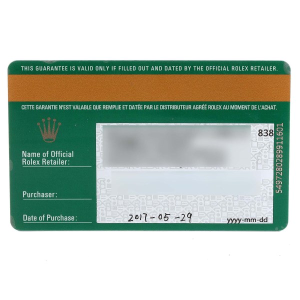 | Box & Papers: | Rolex box and card. |