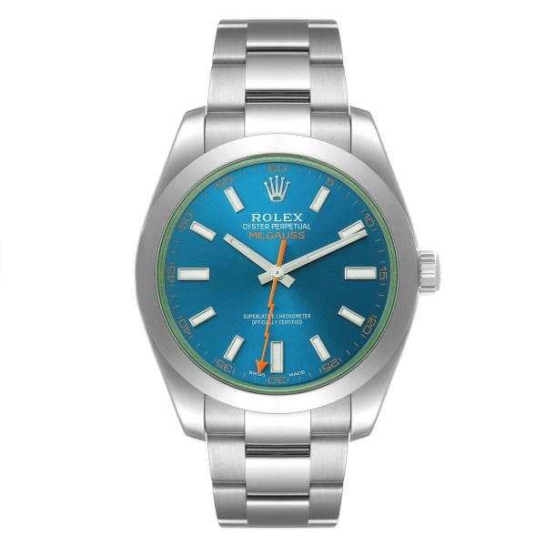 | Model Name: | Rolex Milgauss Blue Dial Green Crystal Steel Mens Watch 116400GV Unworn |