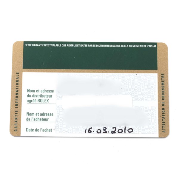 | Box & Papers: | Rolex box and card. |
