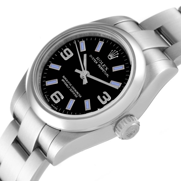 | Model Name: | Rolex Nondate Black Dial Blue Hour Markers Ladies Watch 176200 Box Card |