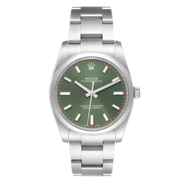 | Model Name: | Rolex Oyster Perpetual 34mm Olive Green Dial Steel Mens Watch 114200 |