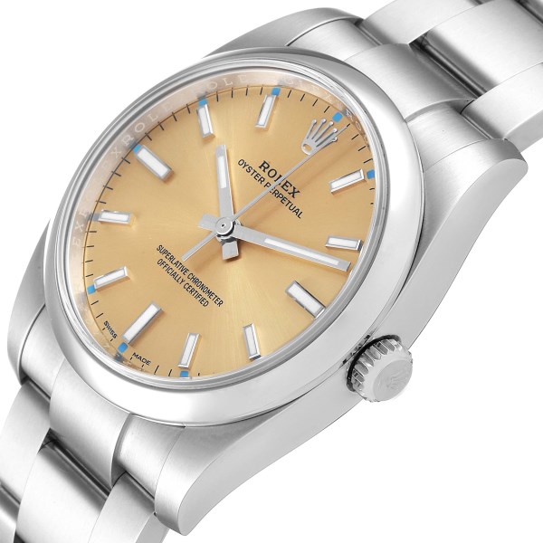 | Case: | Stainless steel case 34.0 mm in diameter. Rolex logo on a crown. |