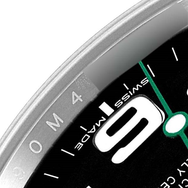 | Dial: | Black dial with the minute Arabic numerals at the five minute marks, the white gold 3-6-9 Arabic numerals, the yellow Crown, green "Rolex" and green seconds hand. Luminous hands. |
