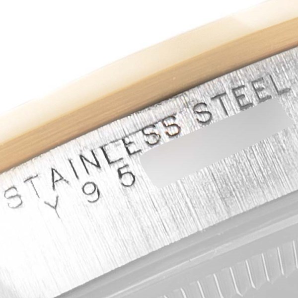| Case: | Stainless steel and 18K yellow gold oyster case 34.0 mm in diameter. Rolex logo on a crown. |
